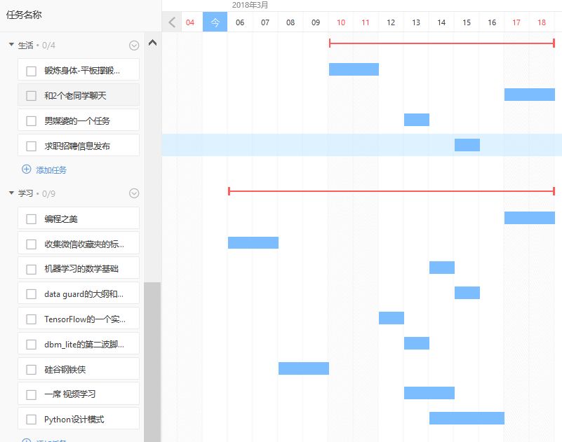 我把任务分为了3类,工作,生活和学习。