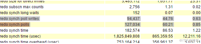 有问题时段,每秒有60.21次redo synch polls。而正常时段,如下图: