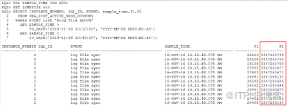 从目前来看,节点间的SCN同步较为频繁,并且故障点的log file sync等待大量在SCN上:P2即为SCN值