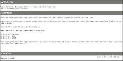 11gR2/Aix - Dedicated Server Processes Have Large Usla Heap Segment Compared To Older Versions (文档 ID 1260095.1 )