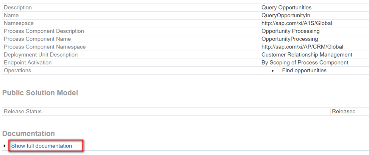 Since I would like to query Opportunity data, I choose QueryOpportunityIn, and click “Show full documentation”: