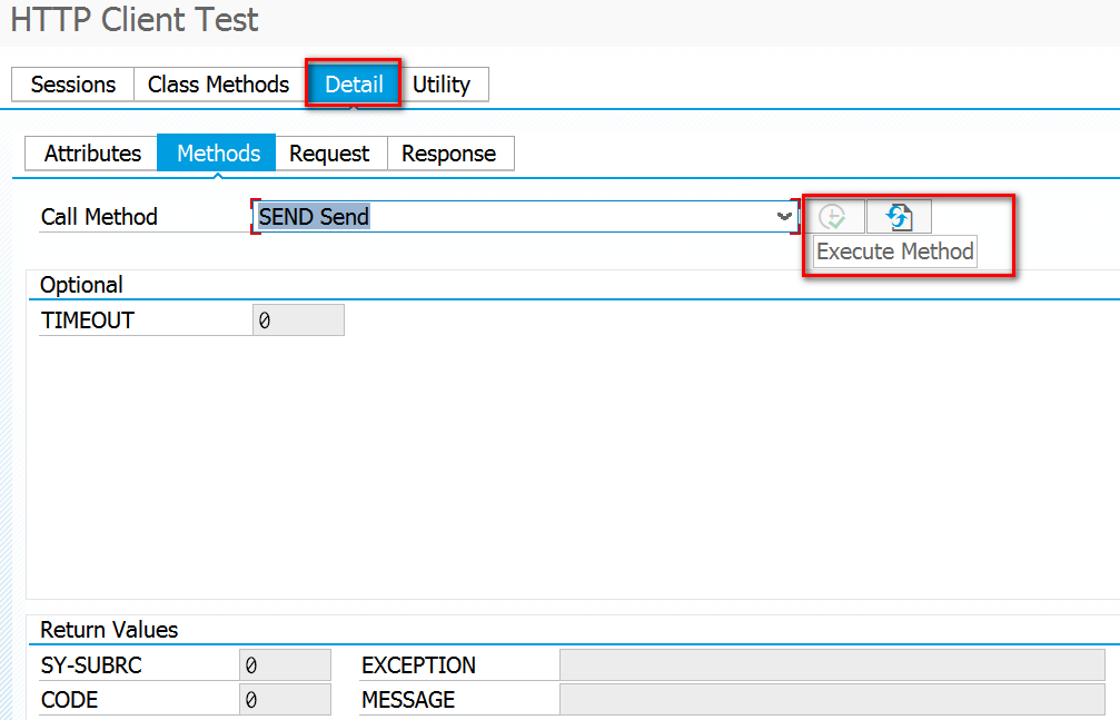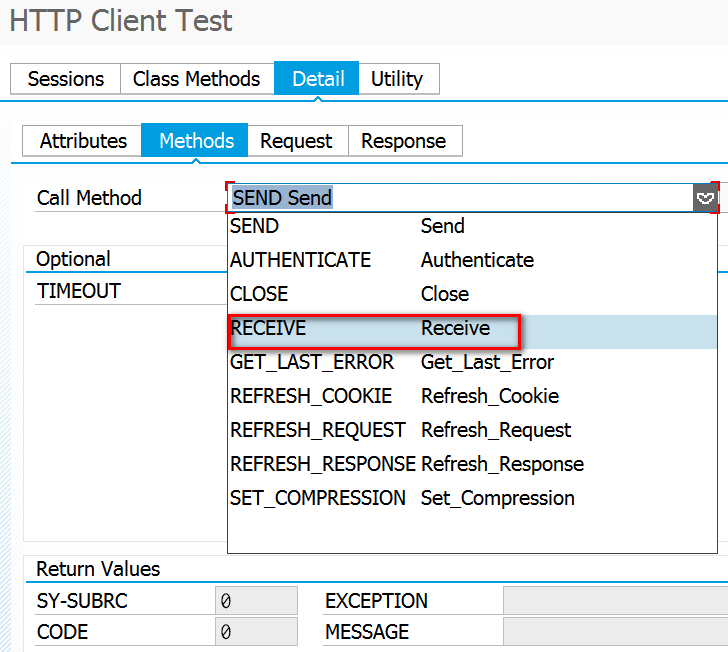 After send method is successfully executed, choose Receive method from drop down list and execute it as well.