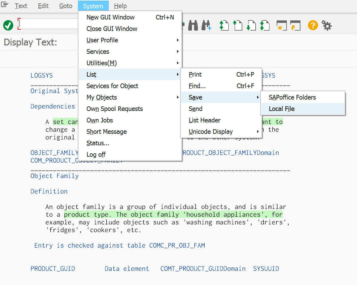 (3) RSSDOCTB – export transparent table definition locally
