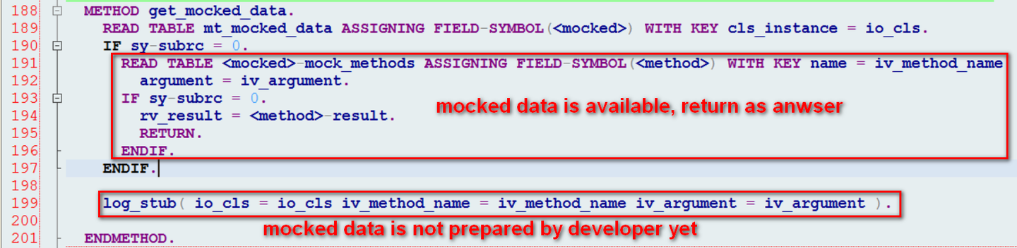 In zcl_abap_mockito=>get_mocked_data, just the same as Java, there is a IF branch: