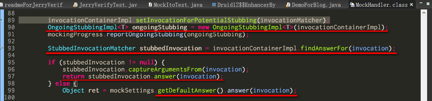 OngoingStubbingImpl stub = (OngoingStubbingImpl)stubbing; The static method call simply returns the OngoingStubbingImpl instance created in step2. We need call corresponding method of this instance to feed mocked data.