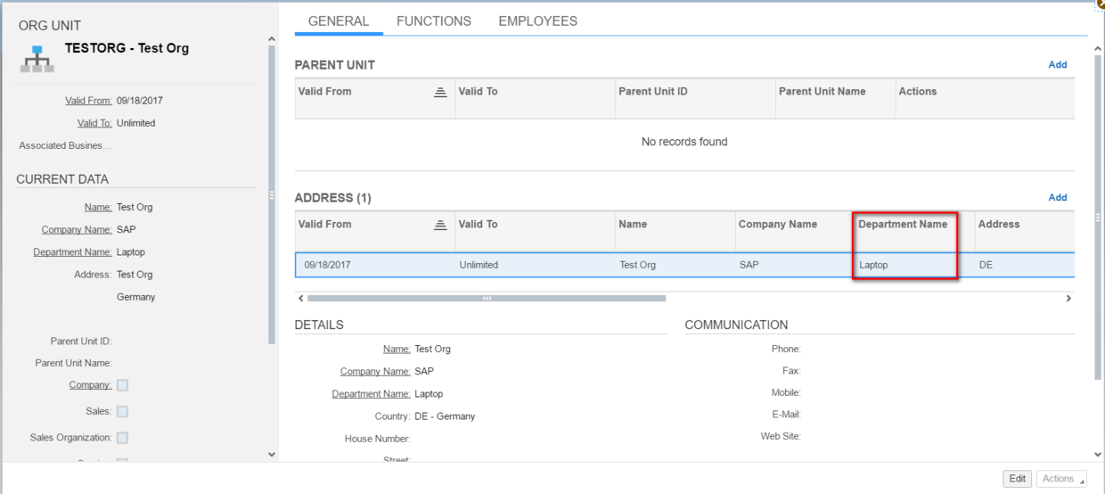 var assignedOrg = EmployeeQueryResultCurrent.OrganisationalUnitAssignment.GetFirst();