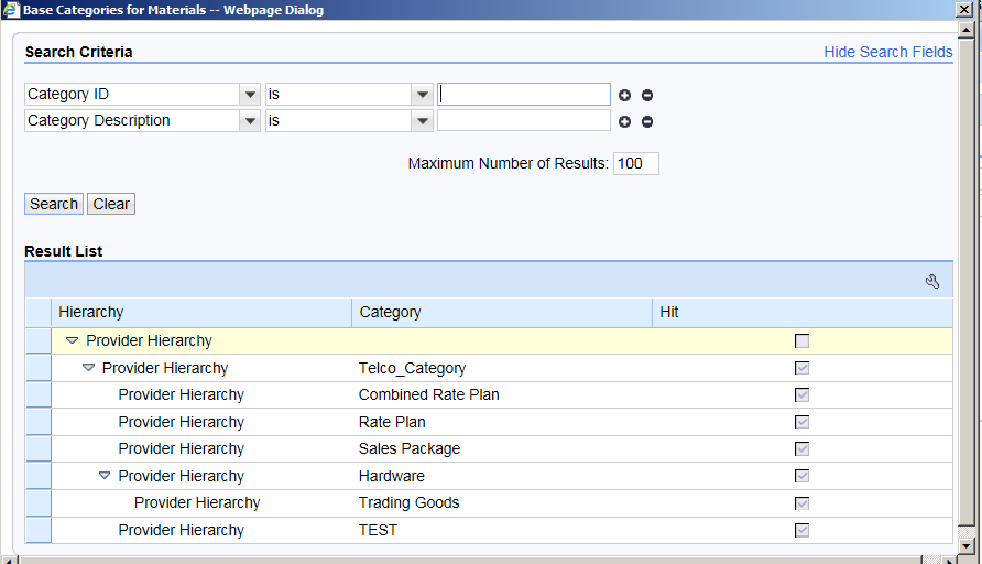 For example, only categories which belong to hierarchy R3PRODSTYP are listed in category search result.
