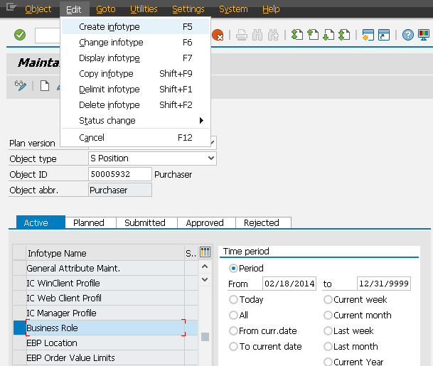 Choose "Business Role" from Active tab, click Edit->Create infortype: