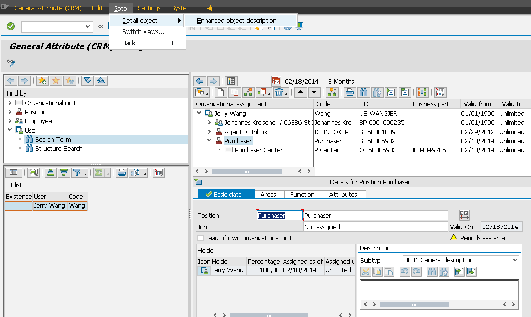 (2) double click on assigned position, choose menu Goto->Detail object->Enhanced object description: