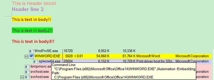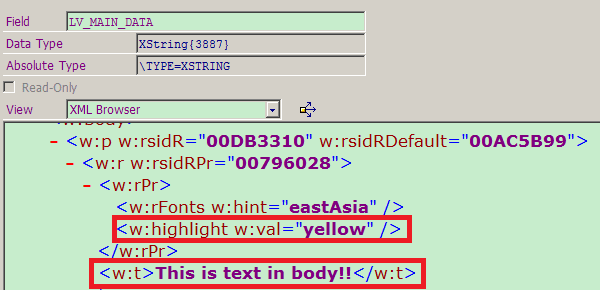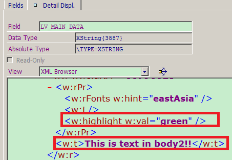 (3) from document instance we can get main part instance. Its binary data includes all the three body line texts with their font color: