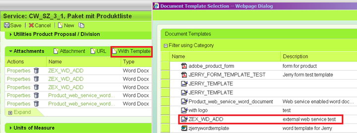 Now you could create attachment based on your word template by clicking button “With Template”. Choose the word template you have just developed from pop up window: