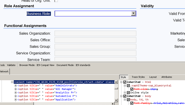 Today I received a ticket with priority very high complaining that the drop down list for Business Role in Work center “Sales Operation” is empty: