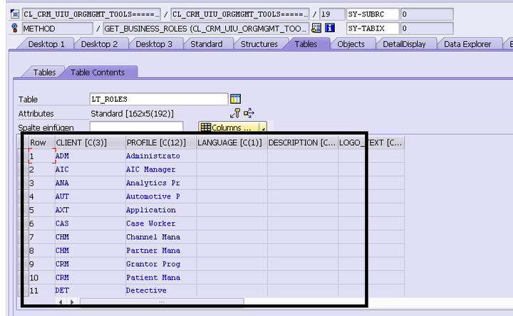 First of all, the entries displayed with my own user are not correct at all, they are just the wrong entries populated in internal table LT_ROLES, column PROFILE in screenshot above. In the wrong implementation, only drop down list key is filled with the incorrect entries.