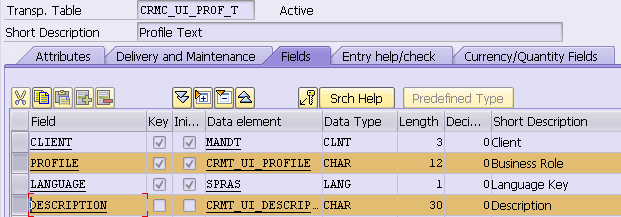 Unfortunately between profile and description column in table crmc_ui_prof_t there is another column LANGUAGE: