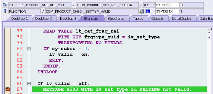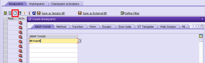 In order to find the root cause for my dedicated issue, I create a dynamic breakpoint on ABAP keyword MESSAGE, since I assume there must be some error message raised which blocks the event creation.