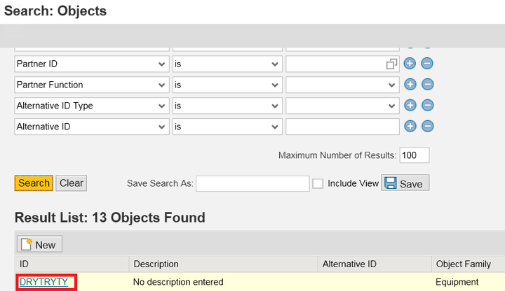 When clicking object ID hyperlink: