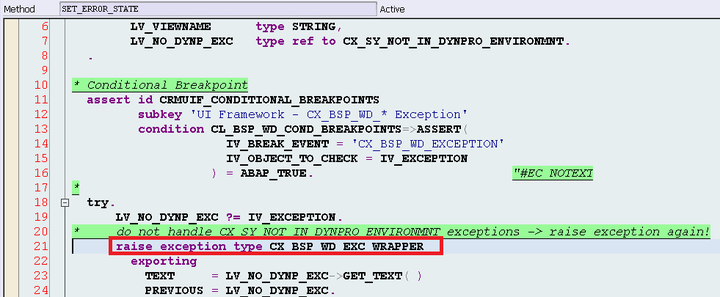 I develop a sample BSP and raise exactly the same exception deliberately there in another system.
