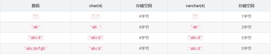 从 CHAR(4)和 VARCHAR(4)列检索的值并不总是相同,因为检索时从 CHAR 列删除了尾部的空 格。通过下面的例子说明该差别: