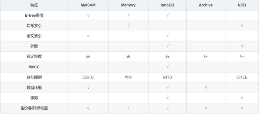 选择标准: 根据应用特点选择合适的存储引擎,对于复杂的应用系统可以根据实际情况选择多种存储引擎进行组合。但是要知道组合使用的缺点: