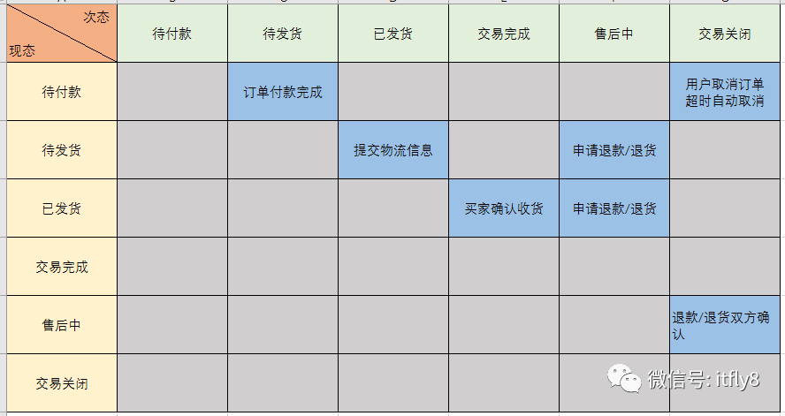 次态: 动作满足后要迁往的新状态,“次态”是相对于“现态”而言的,“次态”一旦被激活,就转变成新的“现态”了。