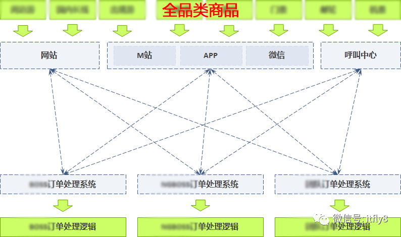 一种是用户挑选的商品来自于不同渠道(自营与商家,商家与商家);