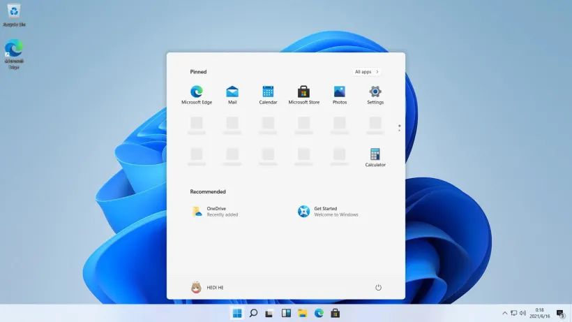 此外,新的 开始菜单带有亚克力背景效果 ,并允许用户将常用的图标固定在上方,下方则是“推荐”,目测功能类似于资源管理器里的“最近文件”。
