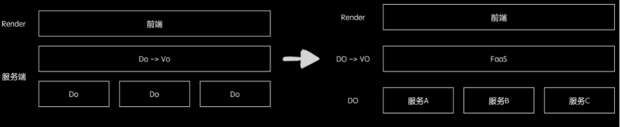 ,一方面是由于客户端体系和前端的离线体系的限制,端侧对于视图的动态性要求极高,没有服务侧能力的前端只能将视图的动态性放在服务端做,另一方面由于端侧架构对于数据接口协议的特殊要求,需要服务端来进行协议的转换,也就是服务端常说的 Do 到 Vo 的处理,这就造成了前后端视图的耦合,为了去除这部分耦合,前端通过 Node.js 做 BFF 层来接管视图层的逻辑,Serverless 则是给了前端做 BFF 开发的最佳选择。