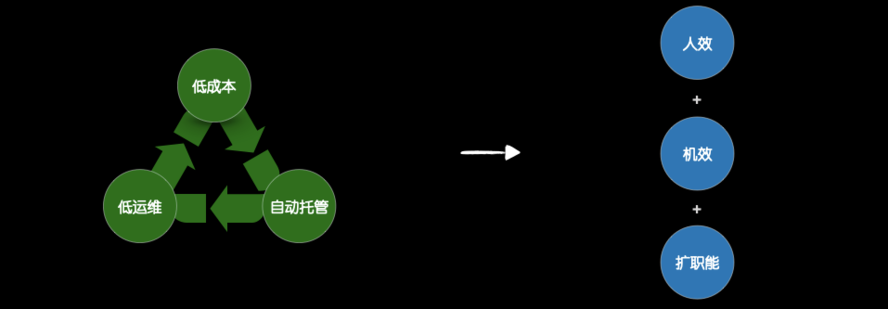 2017 - 2019 年也是集团 Node 开发停滞的两年,这个阶段由于上述问题的闲置,Node 开发无法在移动端铺开,前端使用 Node 主要在中后台的开发,这时矛盾主要表现在前端迫切渴望研发模式转变和涉足服务端开发的高昂成本,直到 Serverless 浪潮的出现让我们看到了曙光,下面来看下 Serverless 能给前端带来什么样的变化: