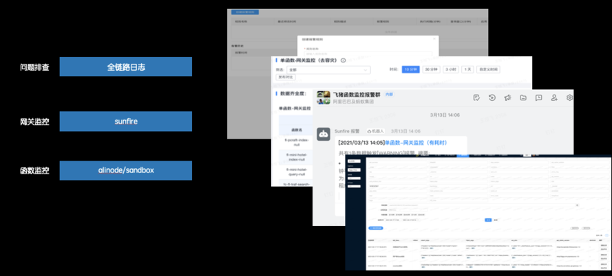 通过函数监控 Alinode、网关监控 Sunfire 以及全链路日志的排查能力,做到问题的快速发现和定位。