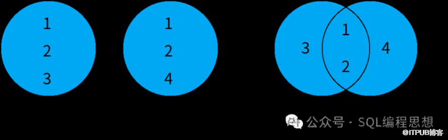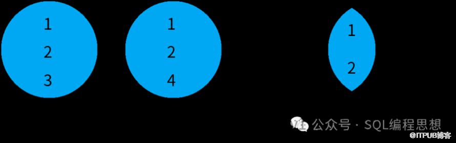 图 中的 1 和 2 是两个查询结果集中都存在的元素,因此交集运算的结果只包含 1 和 2。
