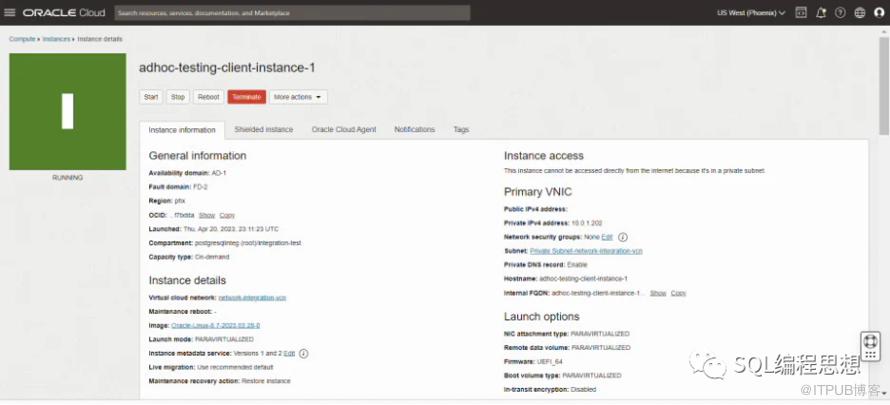 配置 OCI 上的 PostgreSQL 和其他服务类似。启动数据库之后,可以查看具体的细节和关键指标。以下是主配置面板: