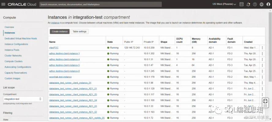 下面是 Oracle 云控制台显示的数据库实例列表: