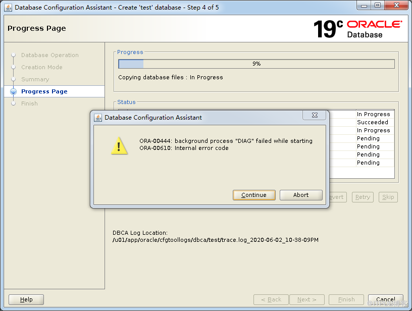 第一次建立,执行dbca,选择create db之后运行不久报错