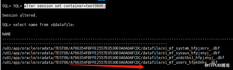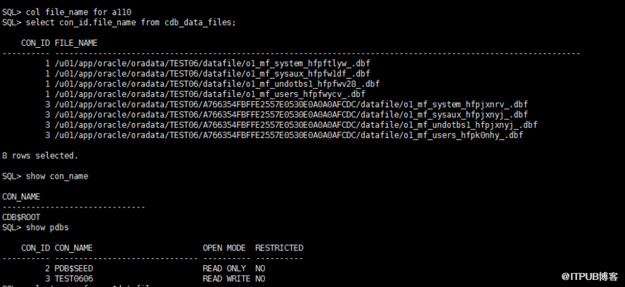 cdb_data_file视图也可以查看(不全,不包含PDB$SEED,只有新建的TEST0606,和系统 CDB$ROOT的 )