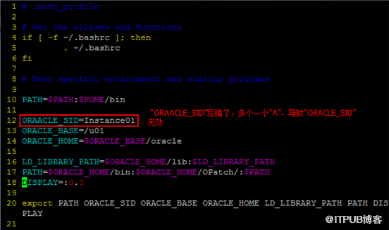 2、查看oracle用户下的“.bash_profile”中的“ORACLE_SID”的配置,