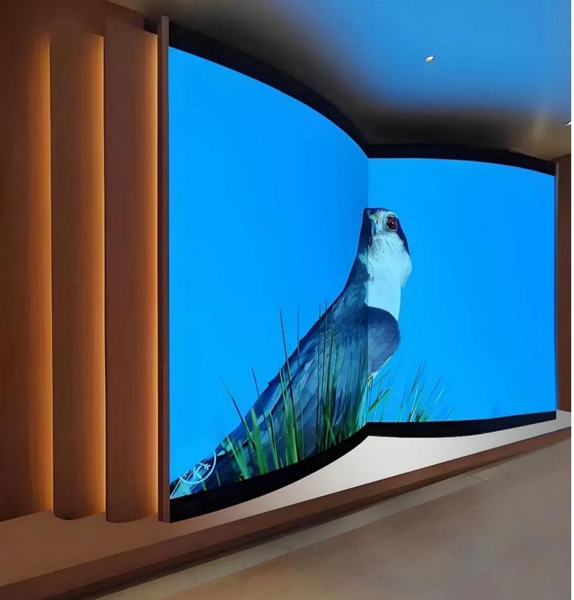 LED软模组的核心功能在于其柔性,以及由此带来的个性化设计能力。这种柔性特性使得LED软模组能够突破传统硬性屏幕的限制,根据应用场景和创意设计需求进行灵活变形。以强力巨彩软模组为例,其R3.0 H系列支持在120°安全弯曲角度内自由塑形,能够轻松打造圆柱屏、波浪屏、飘带屏、弧形屏等多种创意造型,在市场上展现出极强的竞争力。