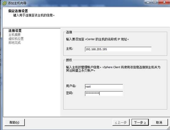 添加主机,指的是ESX主机,这里就是192.168.205.195