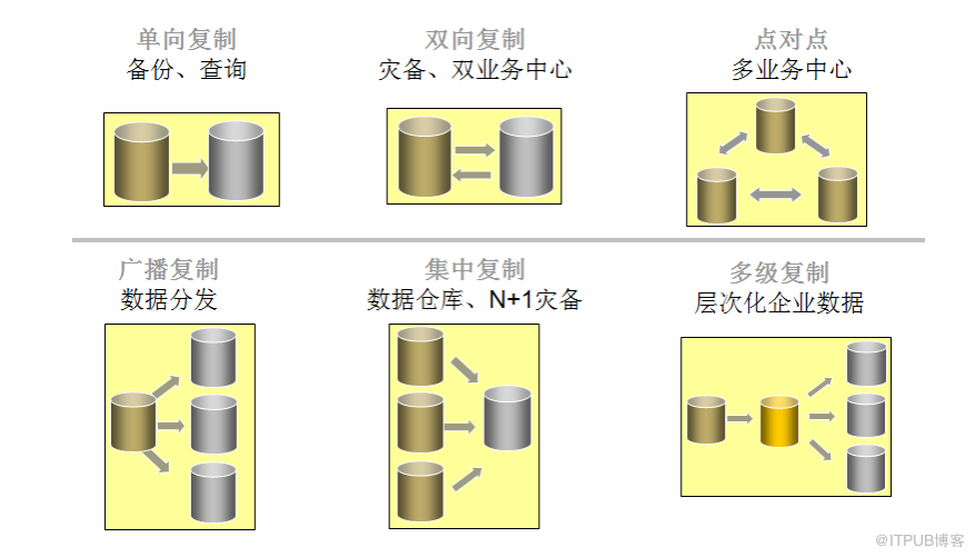 Golden Gate 所支持的方案主要有两大类,用于不同的业务需求: