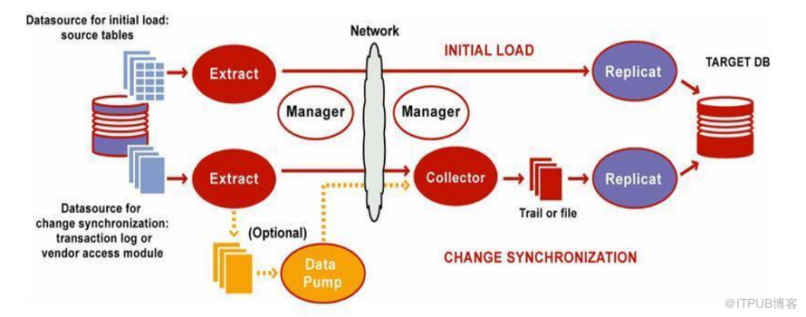⒉ 数据同步,将 Extract 进程捕获到的提交了的事务应用到目标数据库中