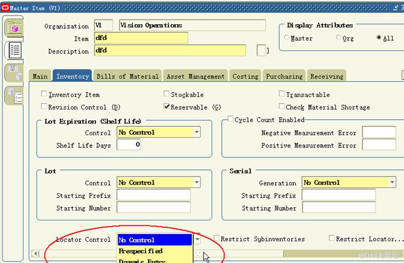 Locator Level是一个自上而下控制的,Order:Org locator Control > Subinv locator Control > Item locator Control