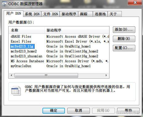 我的OS为Windows7,控制面板>管理工具>数据源(ODBC),这个ODBC为64位的ODBC数据源,因为我们使用的客户端为32位的Oracle 10g客户端,则需要使用32位的ODBC程序来配置连接。