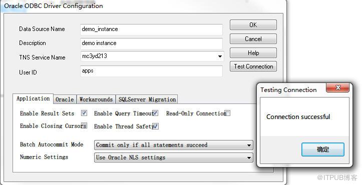 填写Data Source Name, Description, TNS Service Name,User ID,点\'Test Connection\'