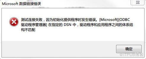 "测试连接失败,因为初始化提供程序时发生错误。[Microsoft][ODBC驱动程序管理器]在指定的DSN中,驱动程序和应用程序之间的体系结构不匹配"