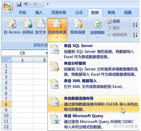 数据页签 > 自其他来源 > 来自数据库连接向导
