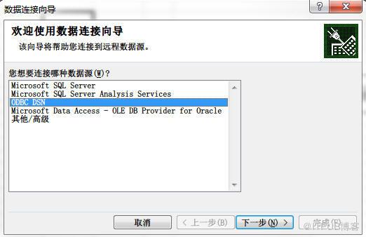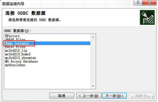 在ODBC数据源中就能看到刚刚创建的数据源,选择数据源,下一步(注意:如果数据库数据较多,这一过程时间会比较长)