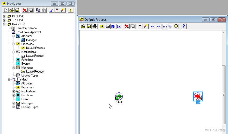 刚开始就会有\'Start\',‘End’两个基本组件被包含进来(这两个组件实际上是从‘Standard’ Item Type中继承过来的)