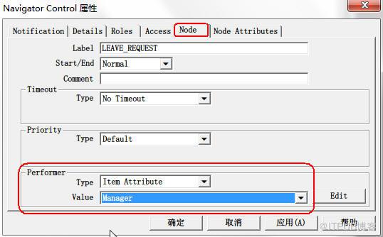 在Node页签中,指定Performer为Manager,这里Performer指的就是谁来查看或者处理这条notification