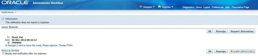 目标:通过Oracle Workflow做一个简单的请假申请工作流,效果:经理接到流程后,可以Approve,也可以Reject。
