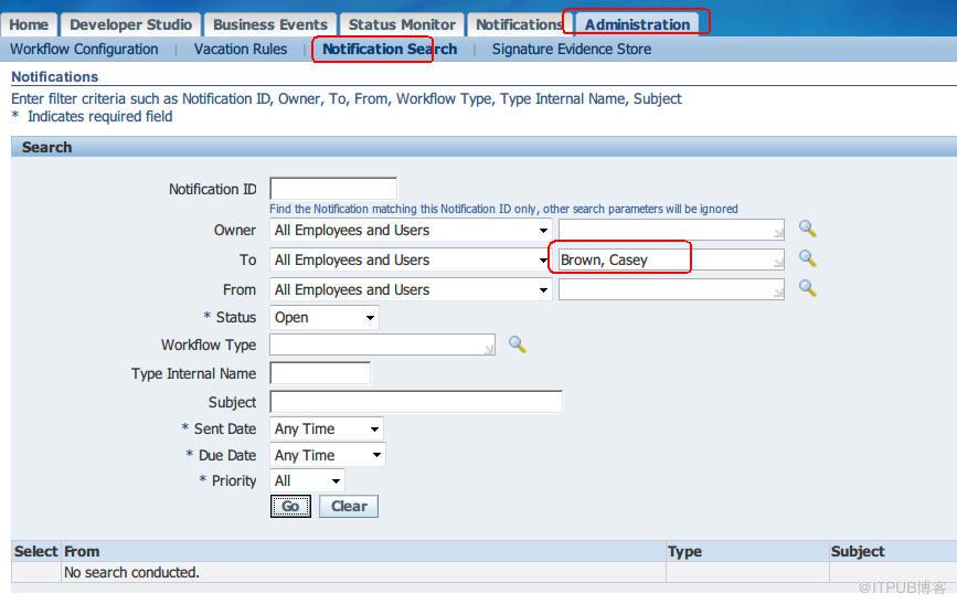 Administration > Notification Search,在To栏位搜索Manager的名字