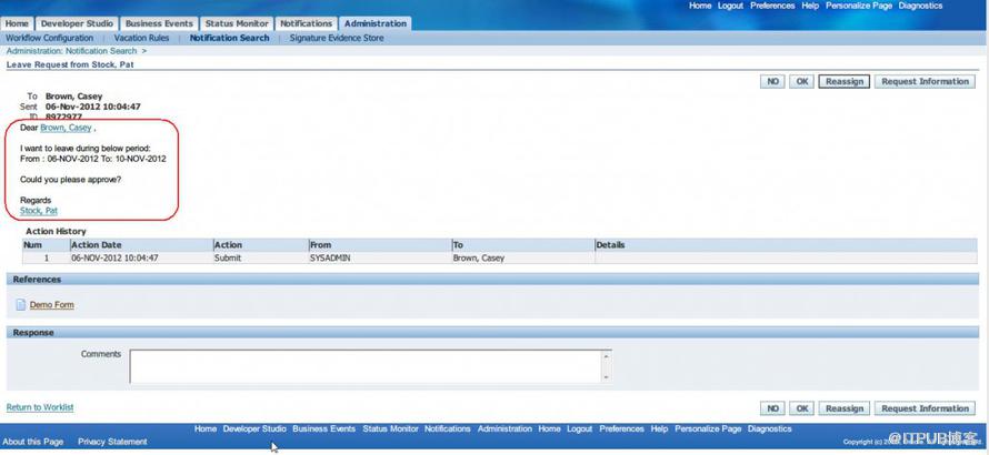 就能看到经理Brown, Casey下的通知,经理就可以审批这个工作流了